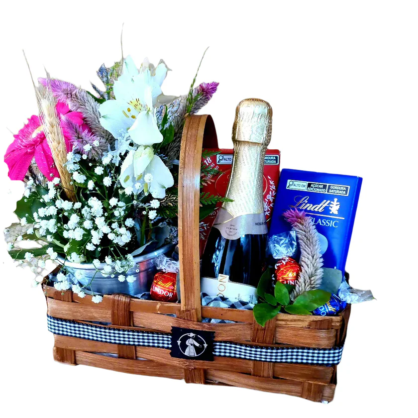 Cesta com Chocolates Lindt, Chandon e Flor